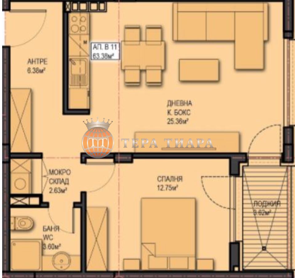 Агенция Тера Тиара предлага Двустаен апартамент в Младост 4.